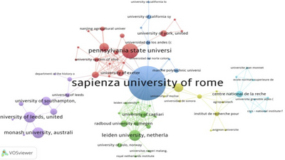 Song song với đó, mạng lưới đồng tác giả thể hiện sự hình thành những trung tâm hợp tác mạnh, trong đó nhóm tác giả tại Sapienza University of Rome giữ vai trò hạt nhân với kết nối mạnh và ổn định. Pennsylvania State University và Leiden University cũng nổi bật như những nút trung tâm trong mạng lưới hợp tác học thuật toàn cầu. Sự liên kết này góp phần củng cố tính liên ngành của nghiên cứu về bản sắc đô thị, kết nối quy hoạch, xã hội học, tâm lý học và các nghiên cứu văn hóa.